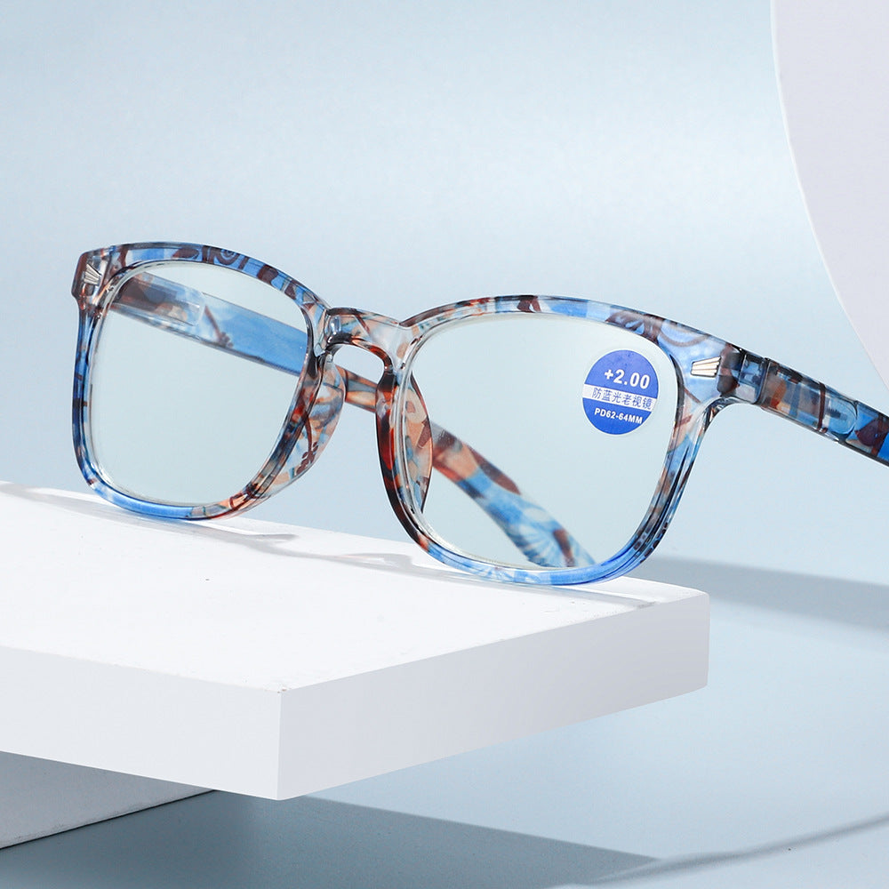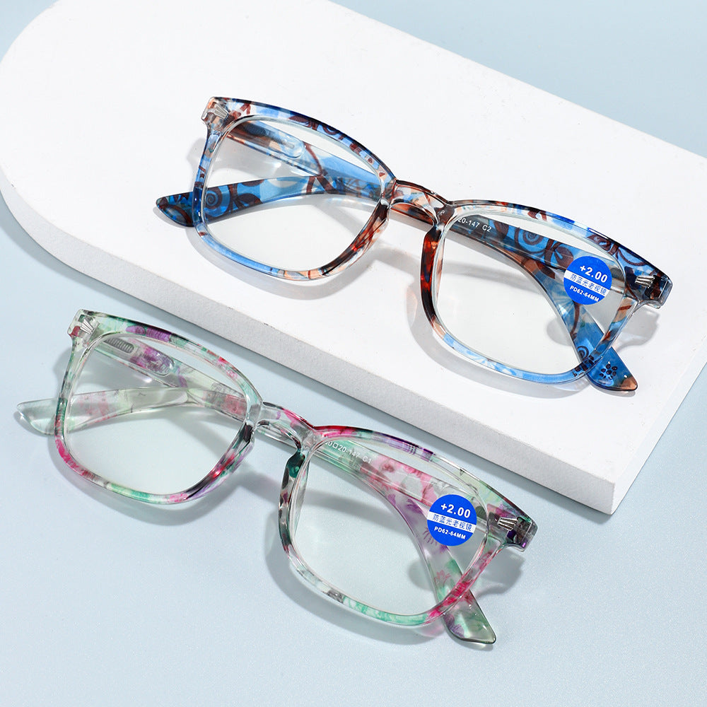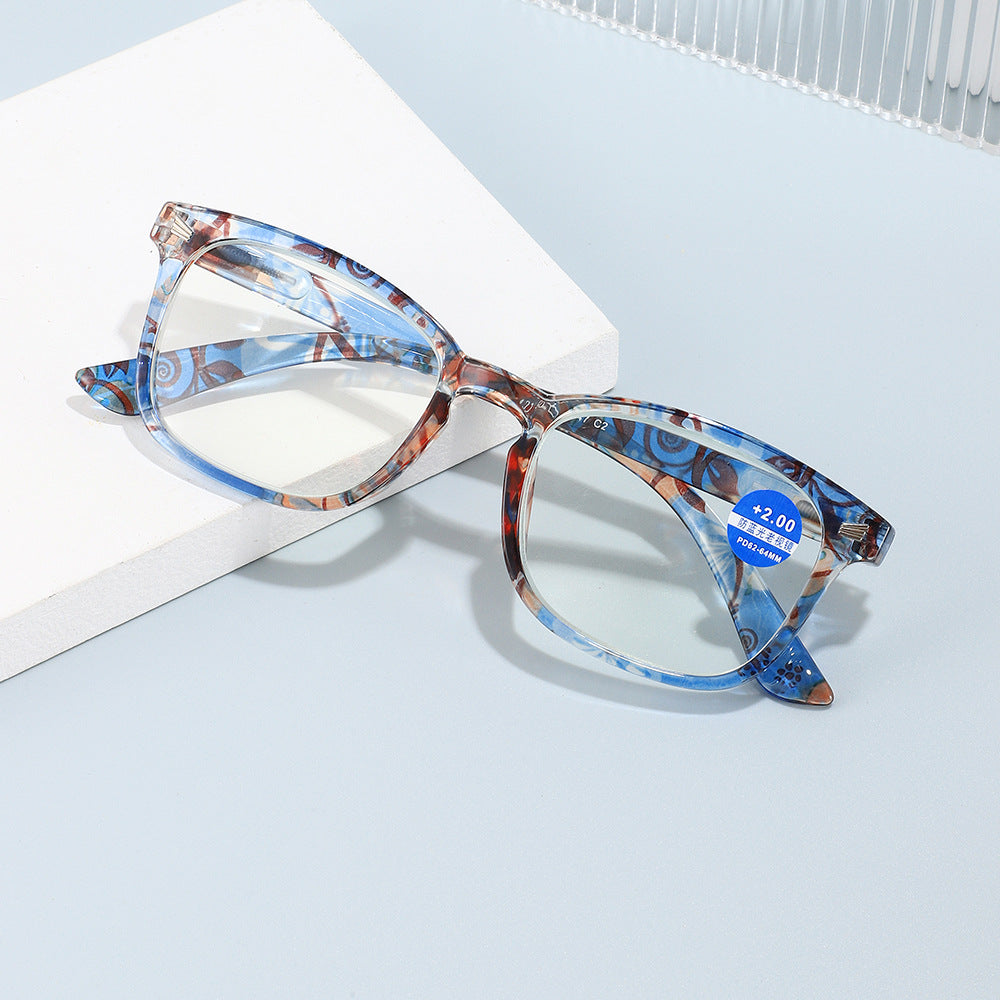 WOMEN'S FASHION PRINTED LARGE FRAME ANTI-BLUE LIGHT READING GLASSES