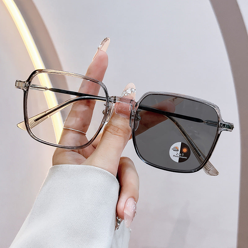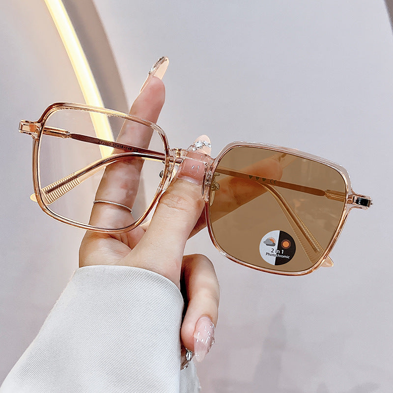 Women's Fashionable Metal Large Frame Color Changing Anti-Blue Light Sunglasses